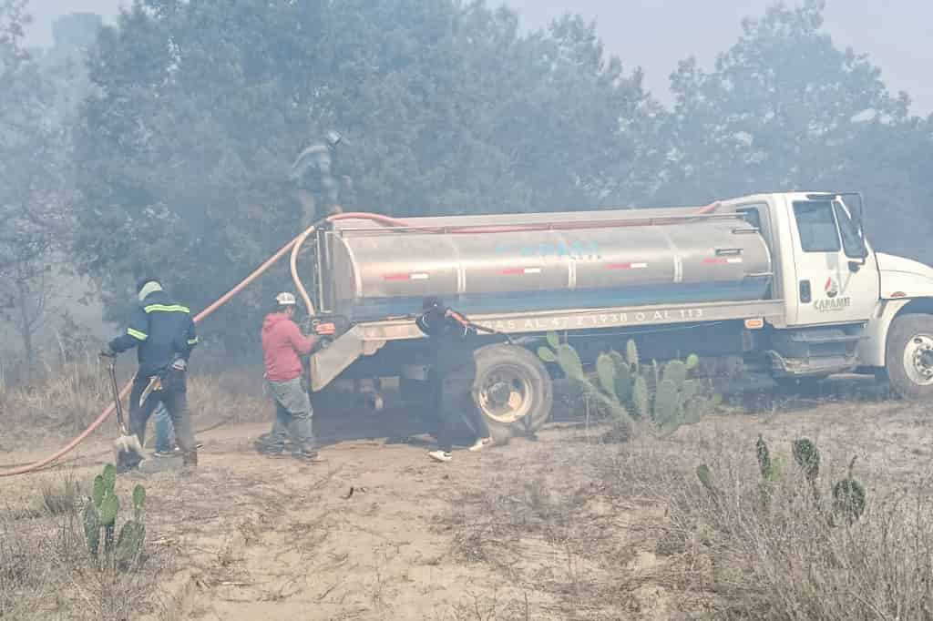 De esta manera, a través de la Comisión de Agua Potable y Alcantarillado del Municipio de Huamantla (CAPAMH) se realizan acarreos de agua a través de dos camiones cisterna, a fin de contribuir al sofocamiento del incendio.