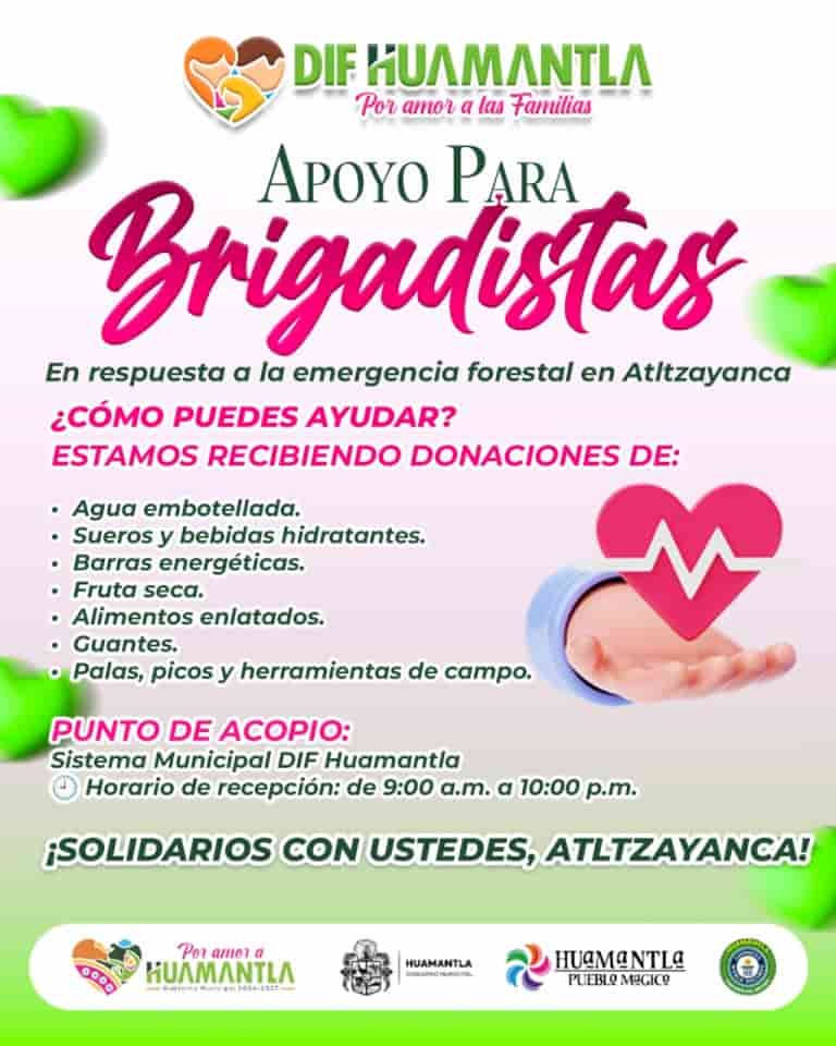 DebatePúblico.- Continuando con las labores de apoyo y solidaridad, el Gobierno de Huamantla, a través del Sistema Municipal para el Desarrollo Integral de la Familia (SMDIF), habilitó un centro de acopio con el objetivo de reunir ayuda para brigadistas y familias afectadas por el incendio forestal ocurrido en el municipio vecino de Atltzayanca.