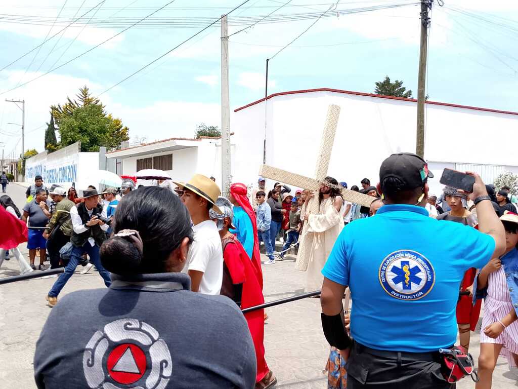 El personal de Protección Civil acompañó en todo momento el recorrido del Viacrucis, brindando atención inmediata ante cualquier eventualidad y reafirmando su compromiso con el bienestar de la población.