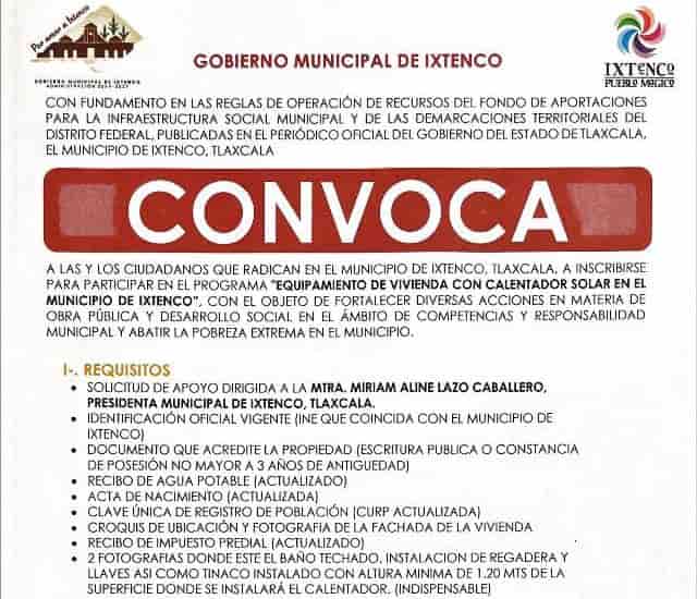 DebatePúblico.- Con el objetivo de mejorar las condiciones de vida de las familias en situación vulnerable y contribuir al abatimiento de la pobreza extrema, el Gobierno Municipal de Ixtenco, encabezado por Aline Lazo Caballero, emitió la convocatoria al programa “Equipamiento de Vivienda con Calentador Solar en el Municipio de Ixtenco”.