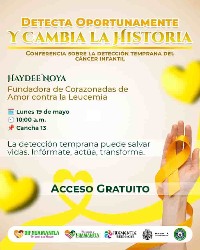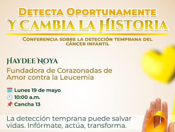 invita a la ciudadanía a asistir a la conferencia “Detecta oportunamente y cambia la historia”, donde se abordará la importancia de la detección temprana del cáncer en niñas y niños.