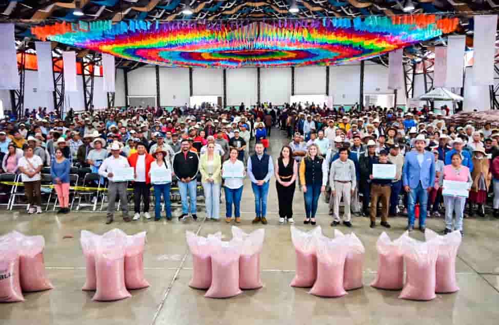 DebatePúblico.- En el marco del Día del Agricultor, y como una medida alternativa para sembrar en zonas de cultivo de Huamantla que más lo necesitan, el Presidente Municipal, Salvador Santos Cedillo, entregó este sábado 90 toneladas de semillas mejoradas a más de mil productores locales.