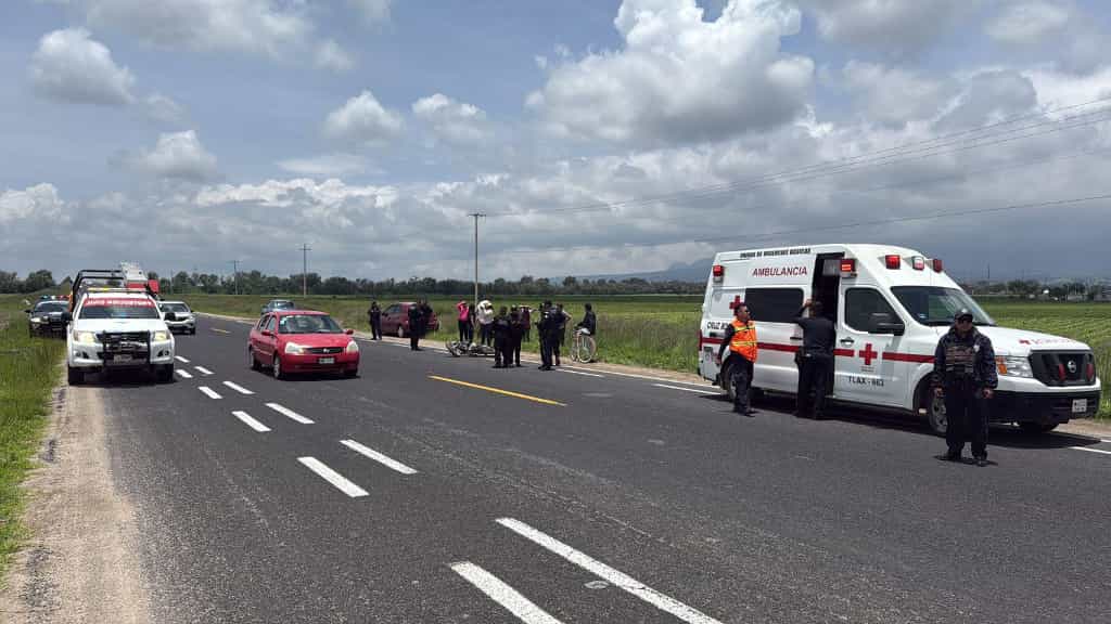 Paramédicos de la Cruz Roja arribaron al lugar para brindar atención al lesionado y trasladarlo al Hospital Bienestar Huamantla para su valoración médica.