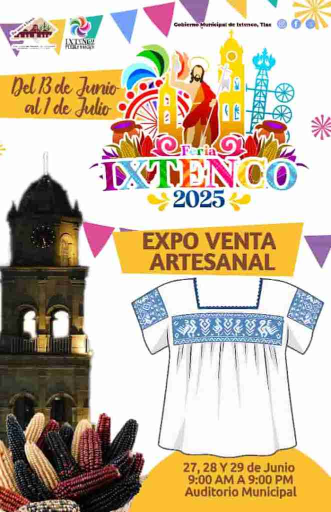 DebatePúblico.- El Gobierno Municipal de Ixtenco, que encabeza Aline Lazo Caballero, a través de la Dirección de Cultura y Turismo, que dirige David Albañil Vásquez, invita con entusiasmo a la ciudadanía y visitantes a disfrutar de la Expo Venta Artesanal, que se realizará como parte de los eventos programados para la Feria Ixtenco 2025.