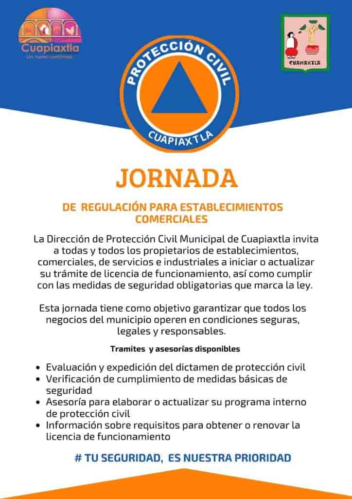 DebatePúblico.- La Coordinación de Protección Civil te invita a la Jornada de regulación para establecimientos comerciales, checa los requisitos para realizar tu trámite.