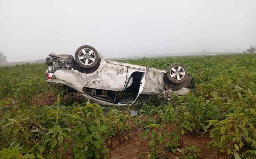 Al llegar al lugar, se confirmó la presencia de un automóvil fuera de la cinta asfáltica, el cual se encontraba volcado sobre terrenos de labor. En el sitio ya se encontraba personal de la Guardia Nacional, a quienes se les brindó apoyo en tareas de abanderamiento y control de vialidad para garantizar la seguridad en la zona.
