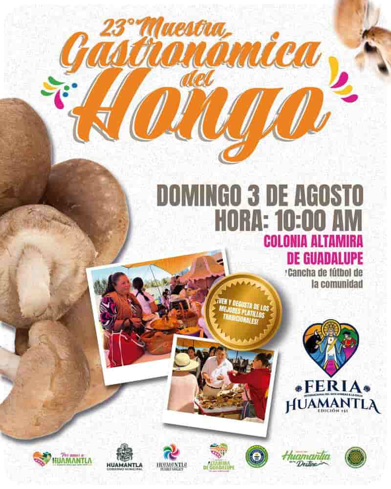 DebatePúblico.- El Ayuntamiento de Huamantla invita a todos los amantes de la gastronomía y la cultura a la 23° “Muestra Gastronómica del Hongo», evento que se llevará a cabo el próximo domingo 03 de agosto a las 10:00 horas en la cancha de fútbol de la comunidad de Altamira de Guadalupe.