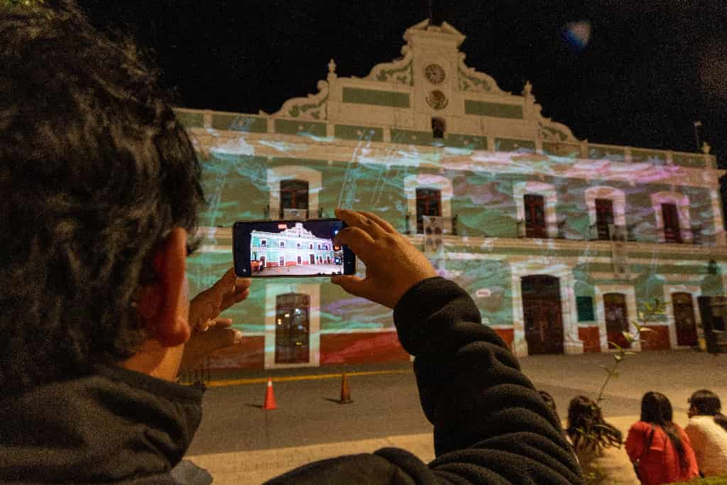 DebatePúblico.- Con el propósito de fortalecer la identidad cultural y ofrecer espacios de convivencia familiar, el Gobierno Municipal de Huamantla, a través de la Coordinación de Cultura, lleva a cabo espectáculos de videomapping en la explanada de la Presidencia Municipal como parte de las actividades de la Feria Internacional del Arte Efímero y la Dalia 2025.
