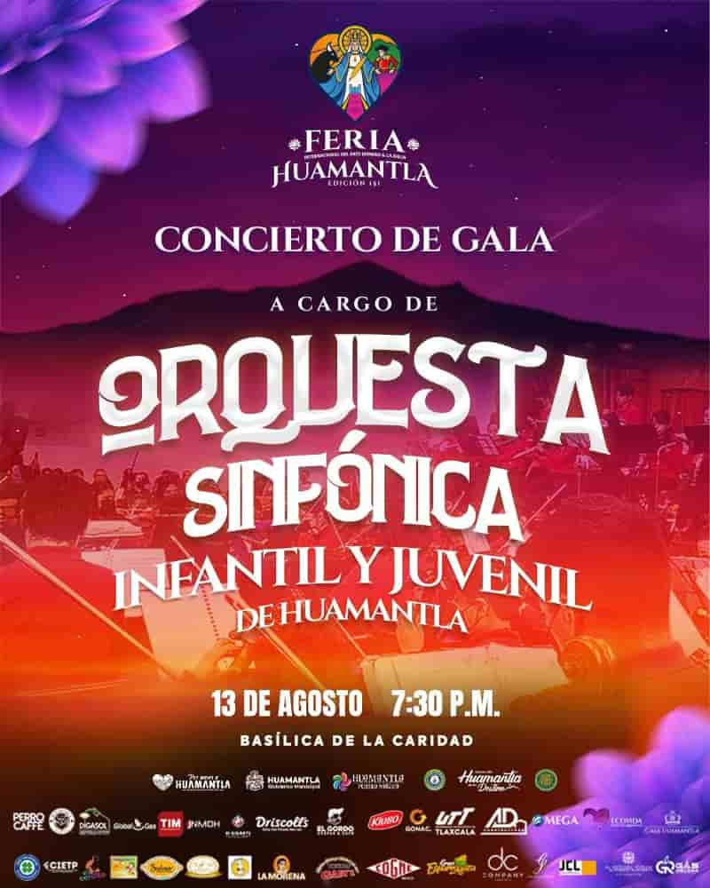 La Coordinación de Cultura del Ayuntamiento de Huamantla y la Orquesta Sinfónica Infantil y Juvenil invitan a la ciudadanía a disfrutar de un emotivo concierto que tendrá lugar en la Basílica de la Caridad a las 7:30 p.m., con entrada libre.