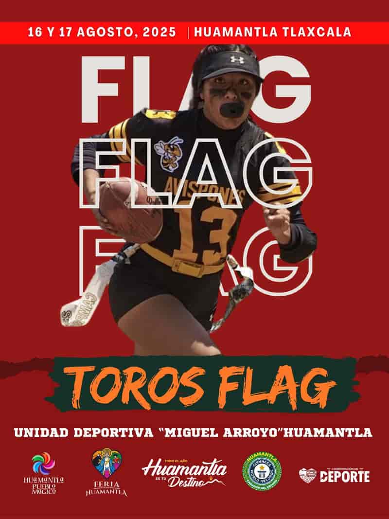 DebatePúblico.- El próximo 16 y 17 de agosto, la Unidad Deportiva «Miguel Arroyo» será escenario del Torneo de Toros Flag, una intensa competencia de flag football enmarcada en las festividades de la Feria Huamantla 2025.