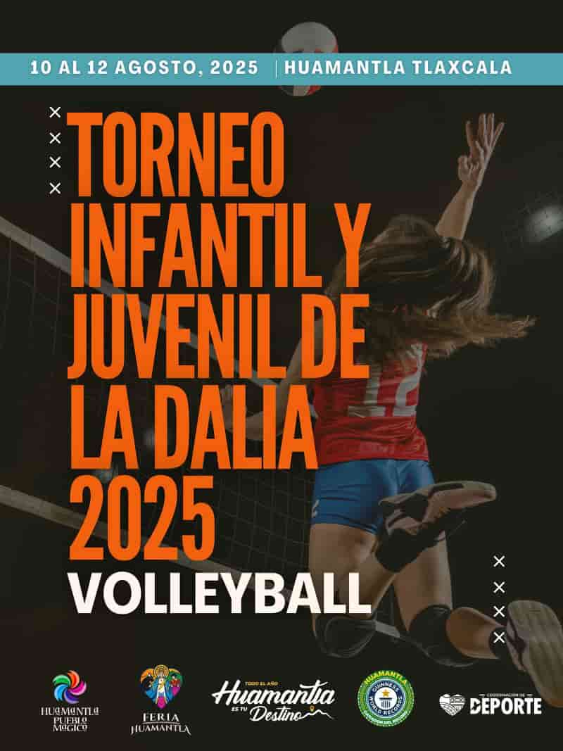 DebatePúblico.- Como parte de las actividades deportivas de la Feria Huamantla 2025, el Gobierno Municipal, a través de la Coordinación del Deporte, invita al Torneo Infantil y Juvenil de la Dalia en voleibol, que se realizará del 10 al 12 de agosto.