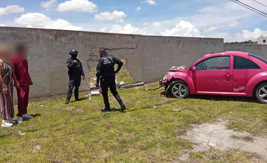 DebatePúblico.- La Dirección de Seguridad Pública, Tránsito y Protección Civil de Huamantla informa que, alrededor de las 12:10 horas, se registró un accidente de tránsito sobre la carretera Huamantla–Ixtenco, donde un vehículo tipo sedán color rosa impactó contra una barda.