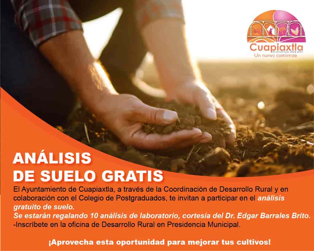 DebatePúblico.- El Ayuntamiento de Cuapiaxtla 2024-2027, a través de la Coordinación de Desarrollo Rural y en colaboración con el Colegio de Postgraduados, te invita a participar en el análisis gratuito de suelo 🌱.