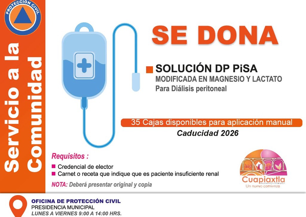 DebatePúblico.- La Coordinación de Protección Civil pone a disposición de la ciudadanía bolsas de agua para diálisis peritoneal (aplicación manual).