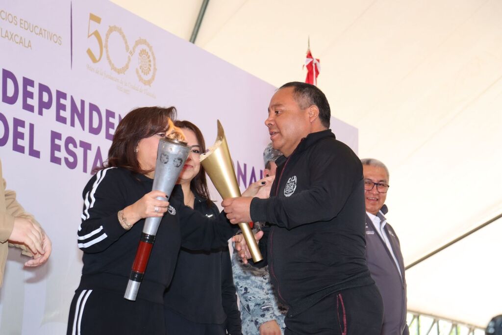 DebatePúblico.- En un acto cargado de simbolismo patrio y unidad, el presidente municipal de Apizaco, Javier Rivera Bonilla, recibió el Fuego Simbólico de la Independencia Nacional de manos de la gobernadora del estado, Lorena Cuéllar Cisneros, como parte de las actividades conmemorativas por el 215 aniversario del inicio de la lucha que consolidó a México como Nación independiente.