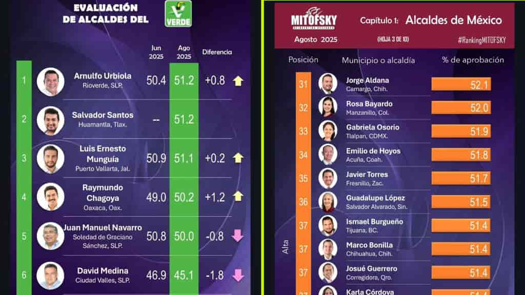 De acuerdo con el estudio más reciente, Santos Cedillo se mantiene en el segundo lugar dentro del ranking de presidentes municipales pertenecientes al Partido Verde Ecologista de México, con un 51.2% de nivel de aprobación, porcentaje que refleja estabilidad en comparación con los resultados obtenidos en junio pasado.