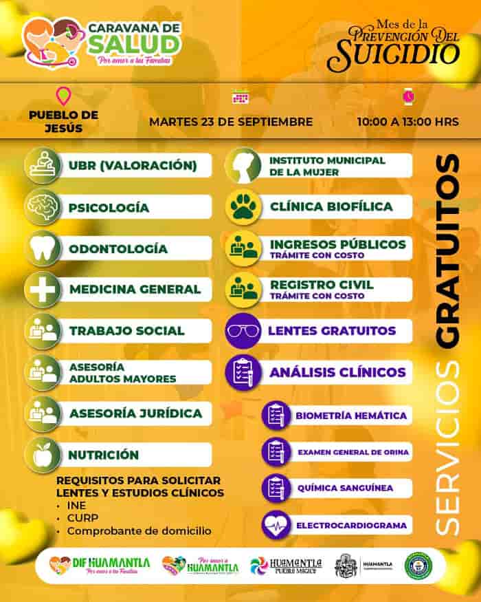DebatePúblico.- El Gobierno Municipal de Huamantla, a través del Sistema Municipal DIF invita a la ciudadanía a participar este martes 23 de septiembre, de 10:00 a 13:00 horas, se llevará a cabo la Caravana de Salud “Por amor a las familias” en el Pueblo de Jesús, con el propósito de acercar servicios médicos y de asistencia social a las familias de esta comunidad y zonas aledañas.