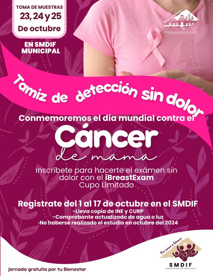DebatePúblico.- En el marco del mes de octubre, dedicado a la lucha contra el cáncer de mama, el Sistema Municipal DIF de Ixtenco anunció el inicio del programa “Tamiz sin dolor contra cáncer de mama”, una estrategia gratuita y sin radiación dirigida a mujeres mayores de 20 años.