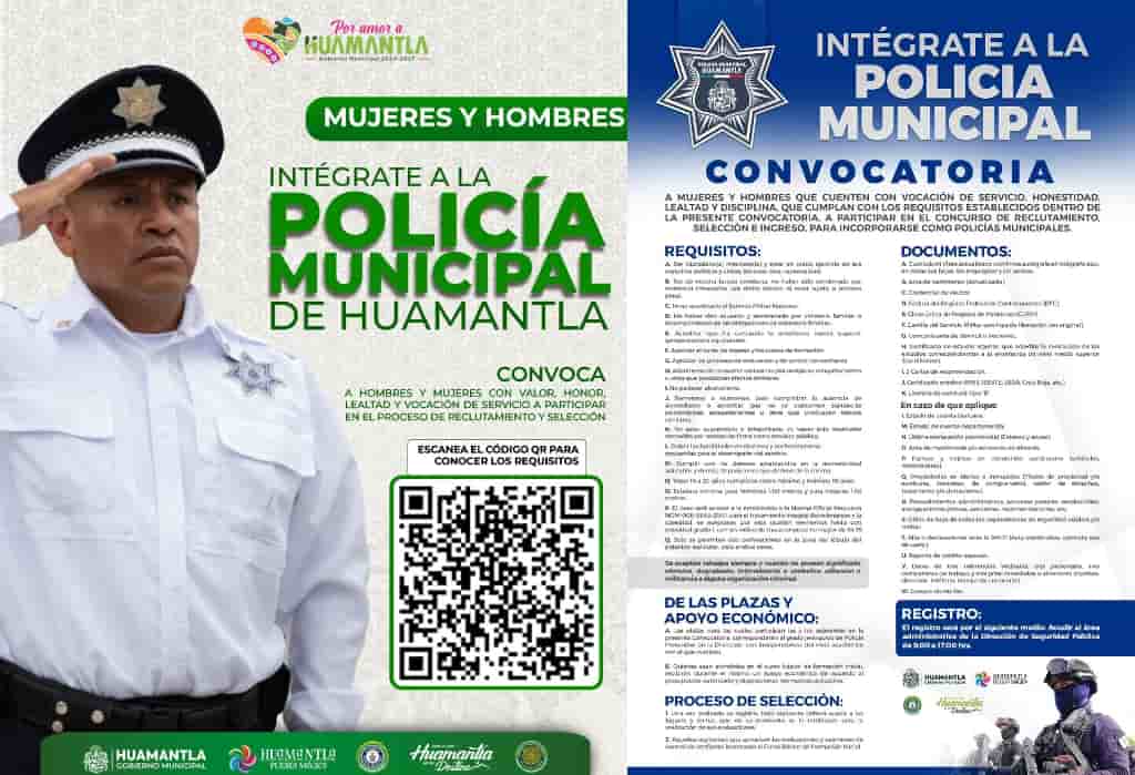 Con esta convocatoria se busca sumar a mujeres y hombres comprometidos con su comunidad, que deseen servir con responsabilidad, disciplina y vocación de proteger a las familias huamantlecas.