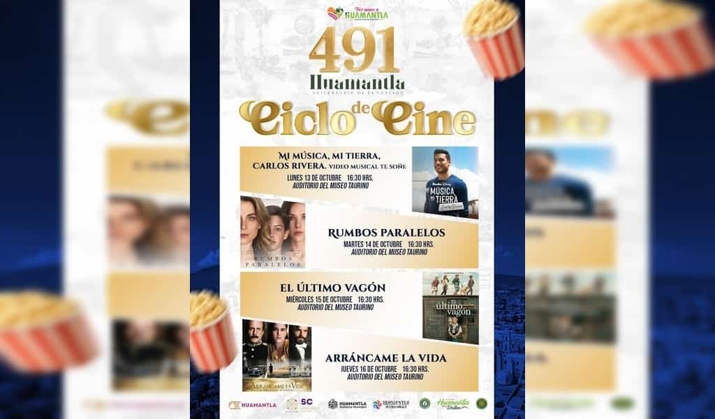DebatePúblico.- El H. Ayuntamiento de Huamantla, a través de la Dirección de Turismo, Cultura y Desarrollo Taurino, invita a la ciudadanía a disfrutar del Ciclo de Cine que se llevará a cabo del 13 al 16 de octubre en el Auditorio del Museo Taurino, a partir de las 4:30 de la tarde, como parte de las actividades conmemorativas por el 491 aniversario de la fundación de Huamantla.