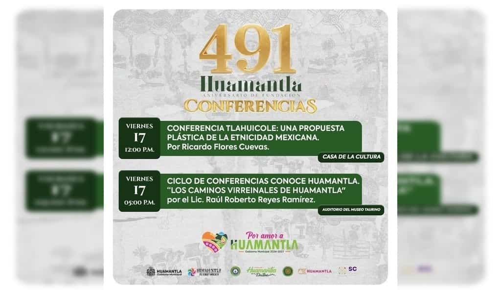 DebatePúblico.- El Ayuntamiento de Huamantla, que encabeza el presidente Salvador Santos Cedillo, continúa con las actividades académicas y culturales en el marco de la conmemoración por el 491 aniversario de la fundación de Huamantla, con un nuevo día de conferencias que destacan la riqueza histórica y artística del municipio.