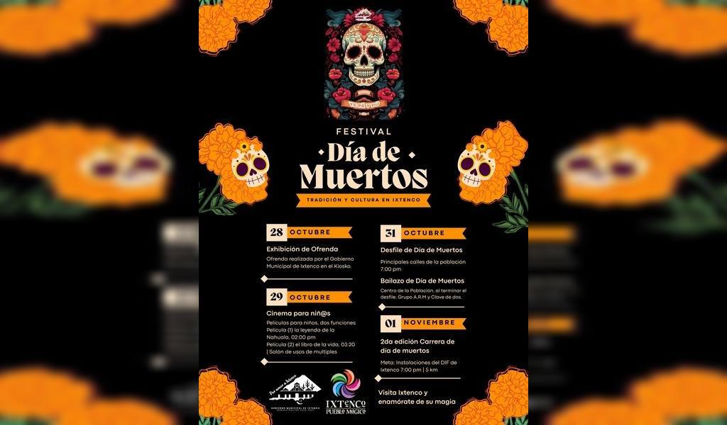 El festival dará inicio el 28 de octubre con la Exhibición de Ofrenda organizada por el Gobierno Municipal de Ixtenco en el kiosko del centro, donde habitantes y visitantes podrán apreciar los altares tradicionales que representan la conexión entre la vida y la muerte.