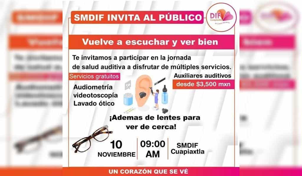 DebatePúblico.- El Ayuntamiento de Cuapiaxtla y el SMDIF te invitan a la Gran Jornada de Salud Auditiva.
