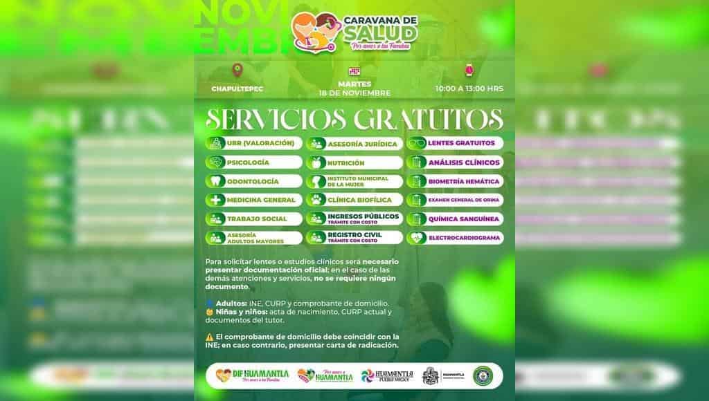 DebatePúblico.- El Sistema Municipal para el Desarrollo Integral de la Familia (SMDIF) Huamantla continúa reforzando sus acciones de atención directa a las familias huamantlecas, y este martes 18 de noviembre llegará a la comunidad de Chapultepec con una nueva jornada de salud y servicios gratuitos.
