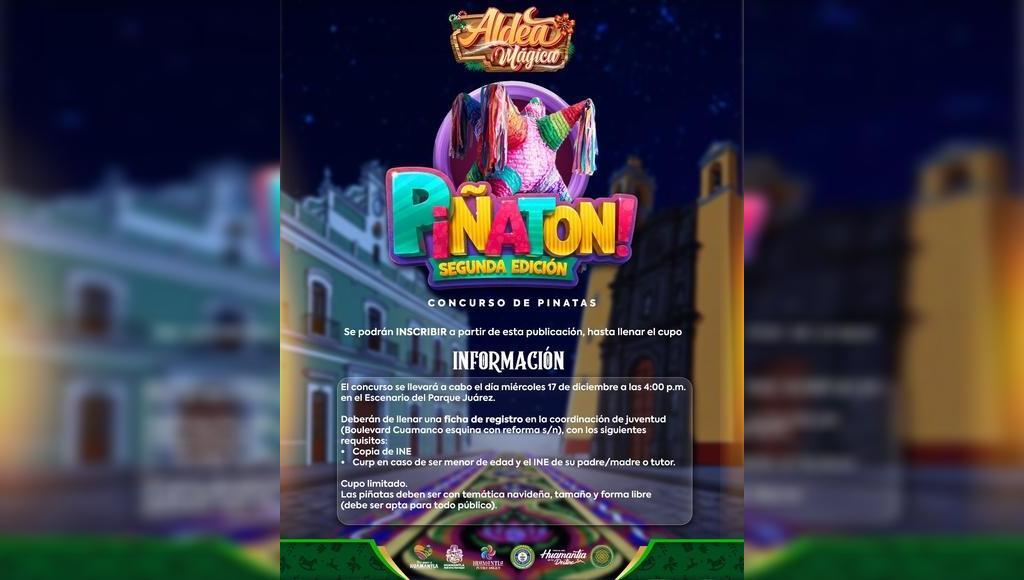 DebatePúblico.- El H. Ayuntamiento de Huamantla, a través de la Coordinación de Juventud, invita a la ciudadanía a participar en la segunda edición del Piñatón, un concurso que busca preservar y enaltecer la tradicional piñata, símbolo de unión, creatividad y alegría para chicas y chicos, así como para adultos.