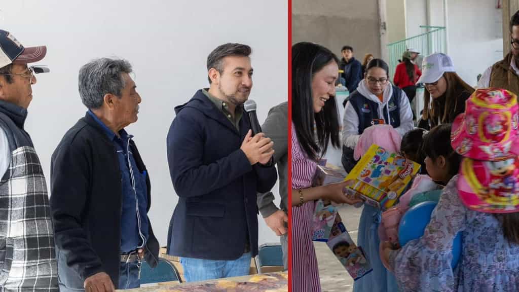 De manera especial, el presidente municipal también acudió a la Casa Ejidal, donde entregó juguetes a las hijas e hijos de campesinas y campesinos de Huamantla, reconociendo el valor del campo y de las familias que todos los días trabajan la tierra y sostienen una parte fundamental del municipio.