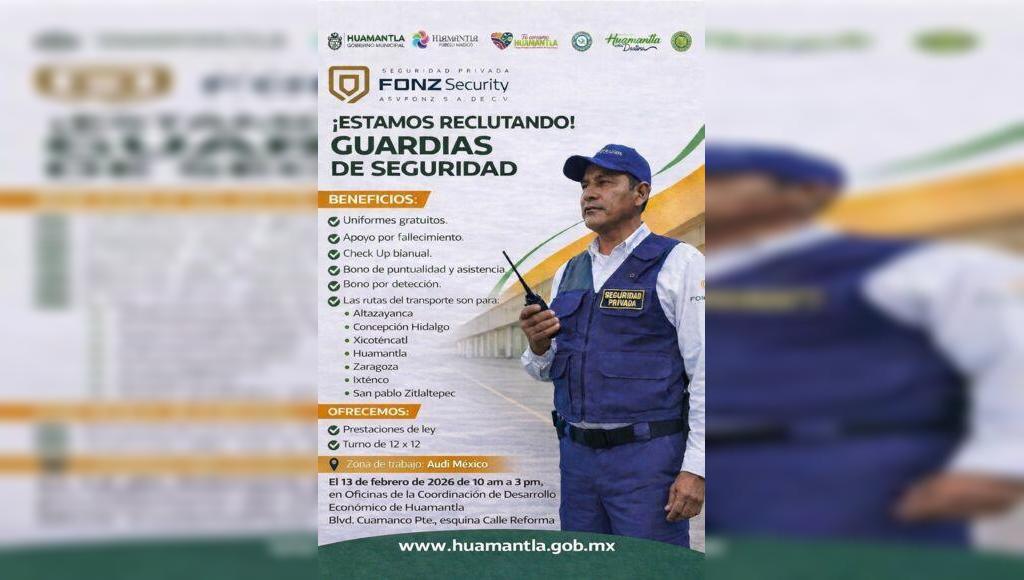 Este esfuerzo busca fortalecer la economía local y brindar alternativas de empleo con prestaciones de ley, permitiendo que más familias huamantlecas accedan a trabajos dignos y estables. Las personas contratadas desempeñarán sus funciones en la zona de trabajo Audi México, bajo un esquema de turno de 12 x 12 horas.