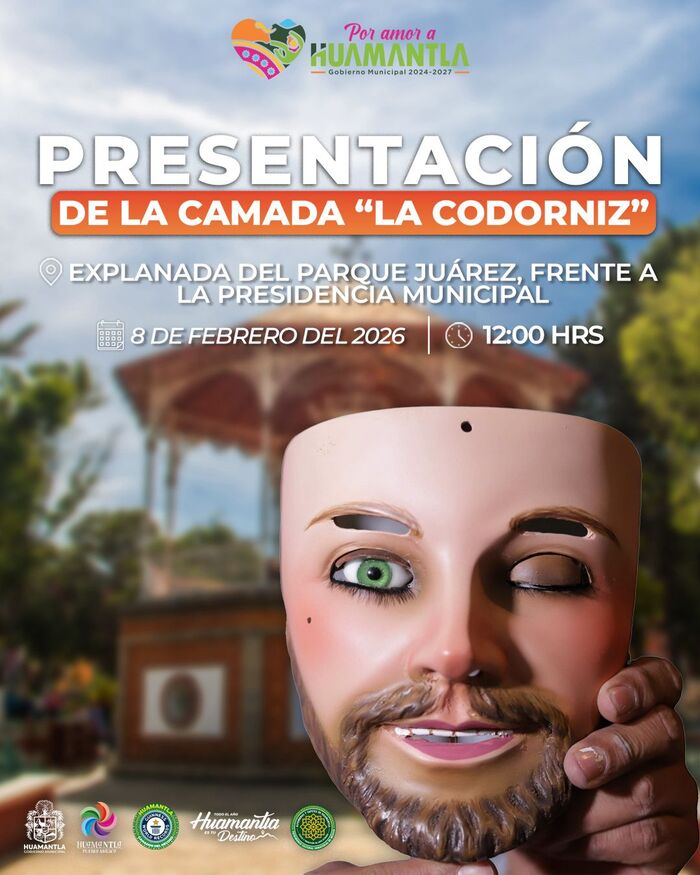 DebatePúblico.- El Gobierno Municipal de Huamantla invita a la ciudadanía a ser testigos de la presentación de la camada de huehues “La Codorniz”, una de las expresiones más representativas del Carnaval tlaxcalteca, que se llevará a cabo este domingo 8 de febrero de 2026 a las 12:00 horas, en la explanada del Parque Juárez, frente a la Presidencia Municipal.