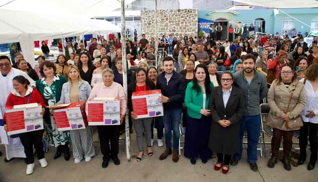 La actividad inició con la clausura del curso de corte y confección de blusas, impulsado por el Sistema Municipal DIF, donde más de 90 mujeres concluyeron un proceso de formación orientado al autoempleo. Como parte de este respaldo, las beneficiarias recibieron una máquina de coser, herramienta que contribuirá directamente al fortalecimiento de la economía familiar.