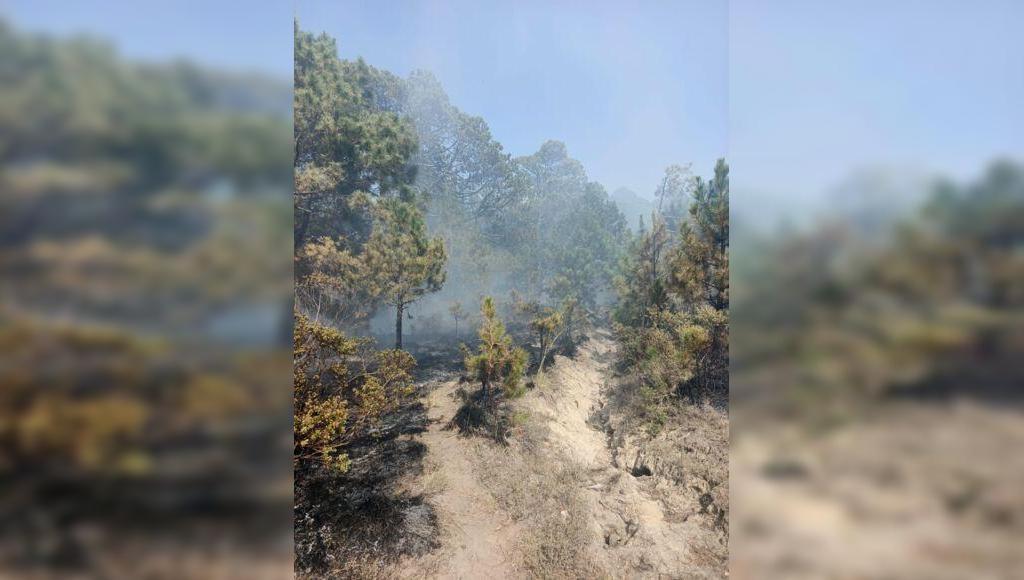 Al arribar al lugar, el personal constató la presencia de fuego que afectaba pastizal, arbustos y residuos de pino, por lo que se iniciaron de inmediato las labores para sofocar el incendio y evitar su propagación a zonas aledañas.