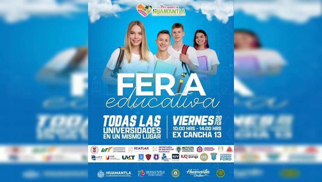 DebatePúblico.- Con el objetivo de acercar a la juventud de Huamantla y la región diversas opciones para continuar su formación académica, el Gobierno Municipal que encabeza Salvador Santos Cedillo invita a asistir a la Feria Educativa 2026, que se llevará a cabo el viernes 20 de febrero, en un horario de 10:00 de la mañana a 2:00 de la tarde, en el Auditorio Ex Cancha 13.