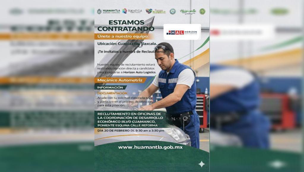 DebatePúblico.- Con el objetivo de seguir abriendo puertas al desarrollo profesional de las y los huamantlecos, el Gobierno Municipal de Huamantla, a través de la Coordinación de Desarrollo Económico, invita a la Jornada de Reclutamiento que realizará la empresa Horizon Auto Logistics (HAL) para integrar nuevo talento a su equipo de trabajo.