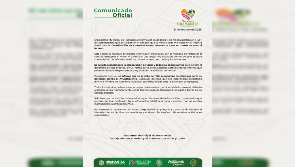 Con estas acciones, el Gobierno Municipal de Huamantla reafirma su compromiso de trabajar con orden, responsabilidad y legalidad, priorizando siempre el bienestar de las familias huamantlecas y el desarrollo armónico de las actividades económicas del municipio.