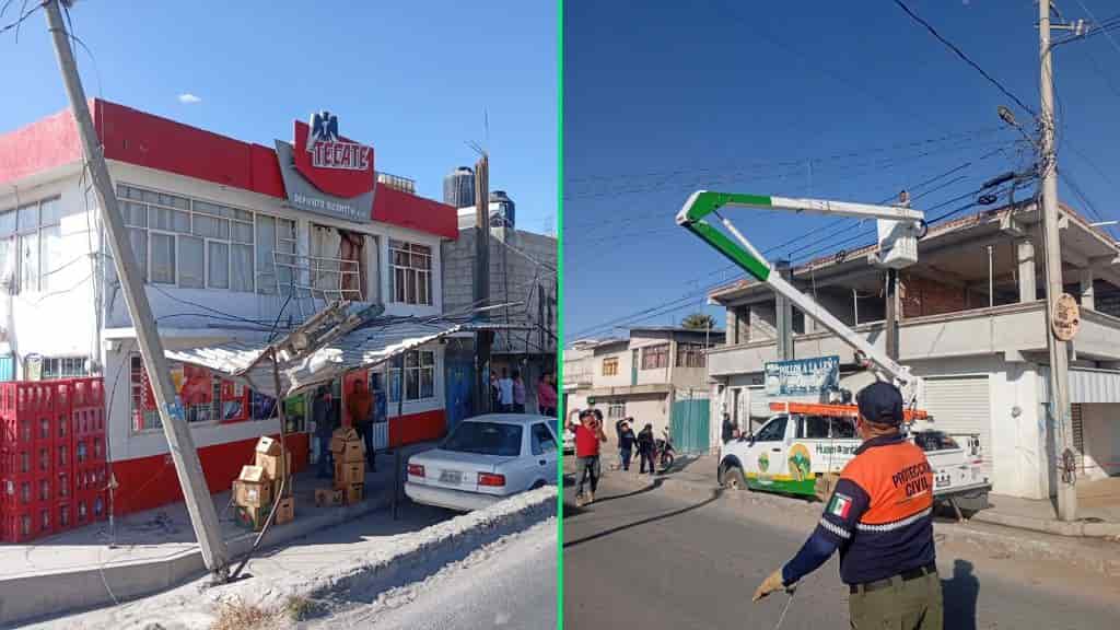 DebatePúblico.- La Dirección de Seguridad Pública, Tránsito y Protección Civil de Huamantla informa que la tarde de este miércoles se atendió de manera inmediata el reporte sobre la caída de postes en la comunidad de San José Xicohténcatl, a la altura de la entrada principal, sobre la vía y calle principal.