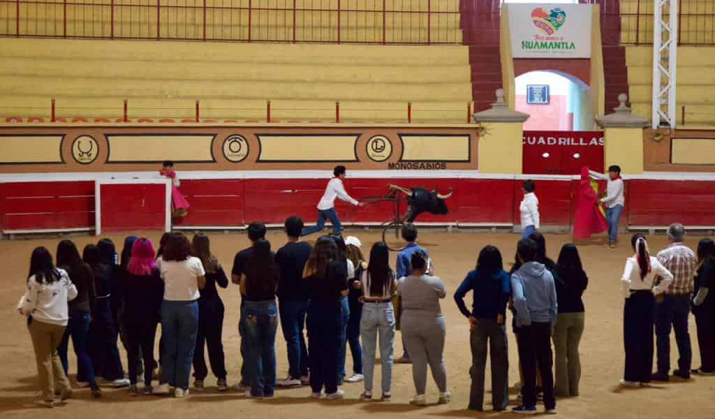 Finalmente, visitaron la Plaza de Toros de Huamantla, donde recibieron una demostración práctica sobre la forma en que se lidia el toro con capotes y muletas, complementando la experiencia teórica con una aproximación vivencial al arte taurino.