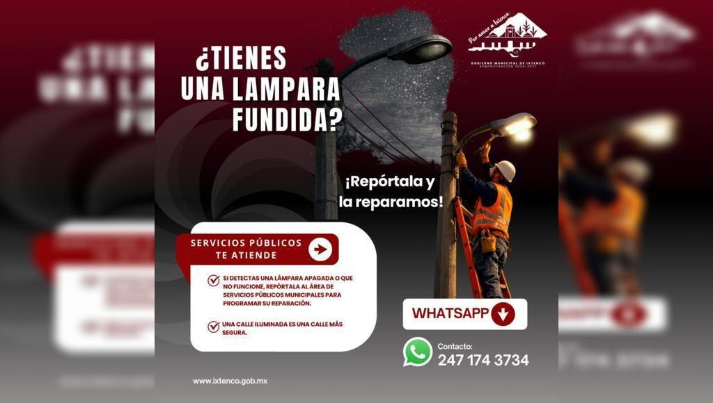 “En Ixtenco seguimos trabajando para mantener nuestras calles bien iluminadas. Si detectas una lámpara apagada o que no funcione en tu calle, repórtala y nuestro personal acudirá a revisarla.