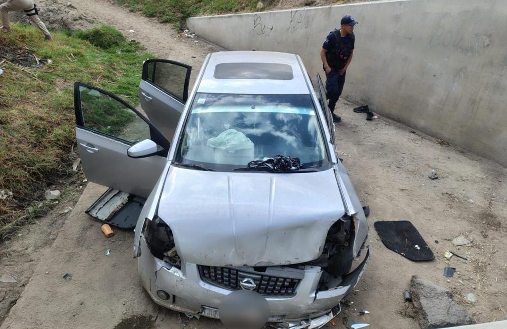 Al arribar al lugar, los elementos localizaron un vehículo que presentaba daños visibles, derivado de una salida de camino e impacto en la zona inferior de un puente. Asimismo, se observó que la unidad presentaba faltantes en algunas de sus partes.