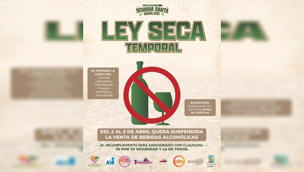 La medida estará vigente del jueves 2 de abril al domingo 5 de abril, con el propósito de reducir riesgos, evitar incidentes relacionados con el consumo de alcohol y salvaguardar la integridad de la población y visitantes.