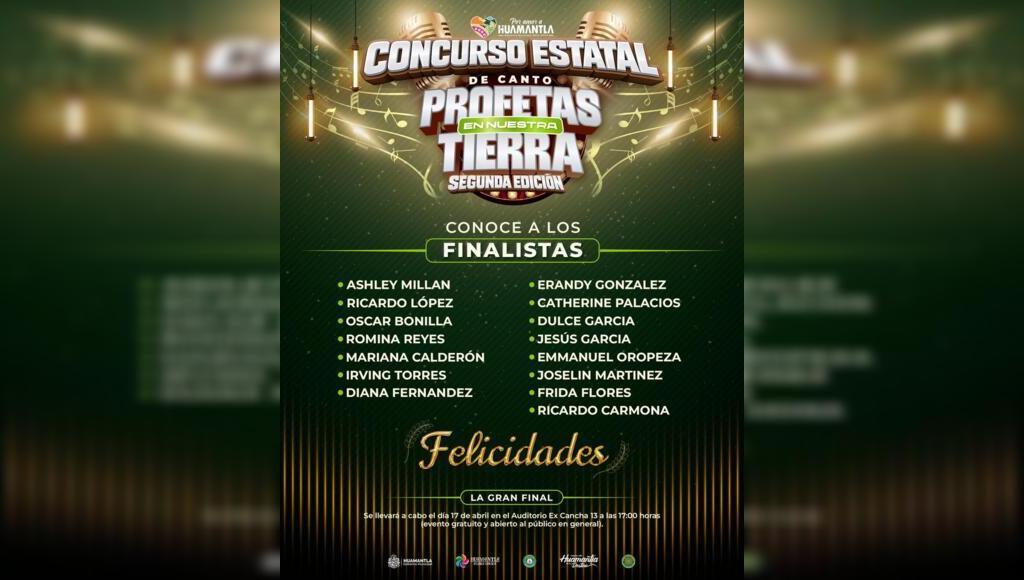 DebatePúblico.- Luego de una exitosa jornada de audiciones que reunió a 61 participantes de distintos municipios del estado, fueron seleccionadas las y los 15 finalistas del concurso de canto “Profetas En Nuestra Tierra”, quienes avanzan a la etapa decisiva de este encuentro musical.