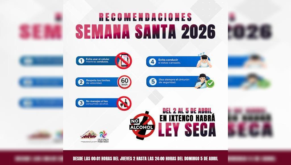 Asimismo, se reitera a la ciudadanía que del 2 al 5 de abril se aplicará Ley Seca en el municipio, medida que previamente fue anunciada y que busca fortalecer la seguridad, el orden público y la sana convivencia durante este periodo.