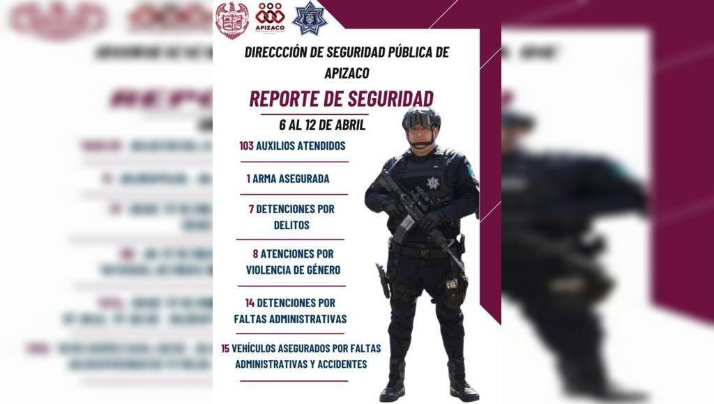 DebatePúblico.- Te compartimos los resultados de las acciones de seguridad realizadas durante la semana del 6 al 12 de abril, como parte de nuestro compromiso permanente y responsabilidad para proteger a la ciudadanía apizaquense.