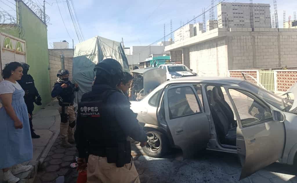 DebatePúblico.- La Dirección de Seguridad Pública, Tránsito y Protección Civil de Huamantla informa que, la tarde de este sábado, se atendió el reporte de un automóvil en llamas en la calle San Miguel, del fraccionamiento San Carlos.