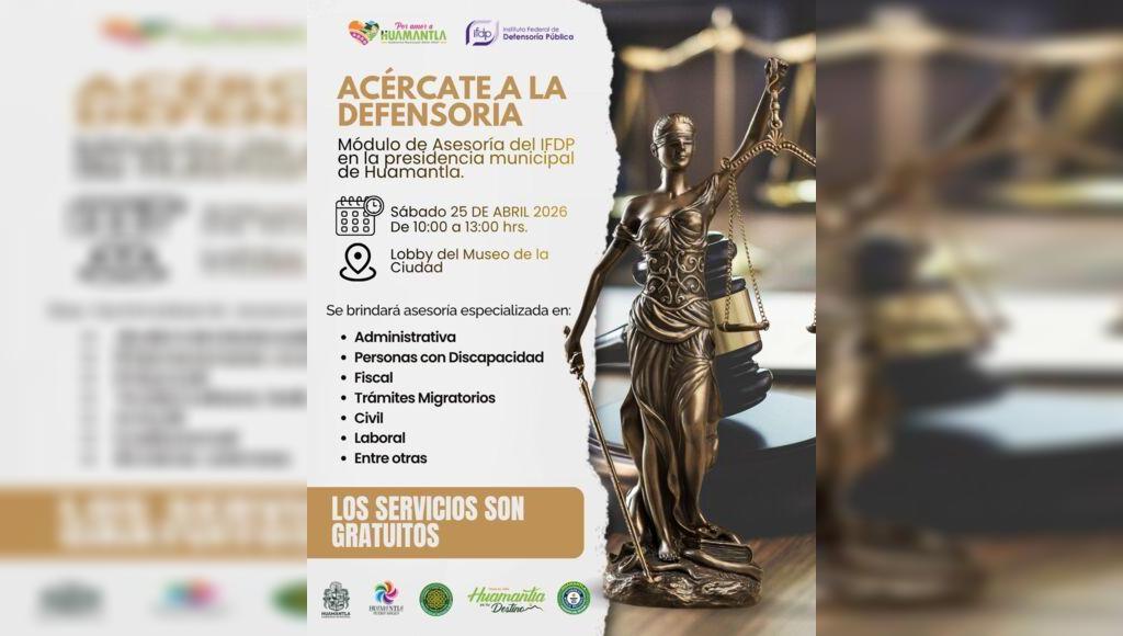 DebatePúblico.- Con el propósito de fortalecer el acceso a la justicia y brindar orientación legal gratuita, el Gobierno Municipal de Huamantla, en coordinación con el Instituto Federal de Defensoría Pública (IFDP), llevará a cabo una jornada de difusión de sus servicios dirigida a la población.