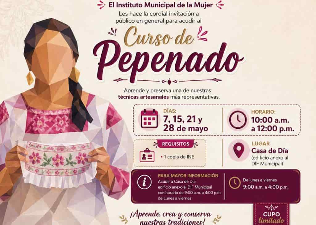 DebatePúblico.- Con el objetivo de fortalecer las tradiciones y fomentar el aprendizaje de técnicas artesanales, el Instituto Municipal de la Mujer invita al público en general a participar en el curso de pepenado, una actividad enfocada en la preservación de este arte textil representativo.