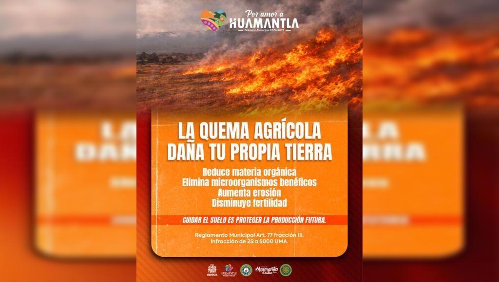 El fuego deteriora la fertilidad del suelo y afecta la productividad del campo Autoridades municipales exhortan a adoptar prácticas sustentables DebatePúblico.- Como parte de la campaña permanente de prevención de incendios forestales y protección del medio ambiente, el Gobierno Municipal de Huamantla hace un llamado a las y los productores del campo a evitar laSigueSigue leyendo «HUAMANTLA FORTALECE CAMPAÑA DE PREVENCIÓN DE INCENDIOS Y LLAMA A EVITAR LA QUEMA AGRÍCOLA»
