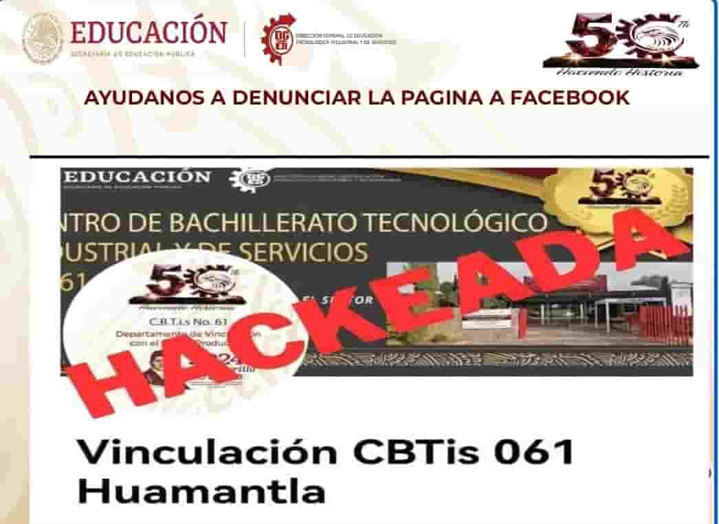 Hackean página institucional del CBTIS No. 61, se pide a los seguidores denunciarla para que sea eliminada de Facebook